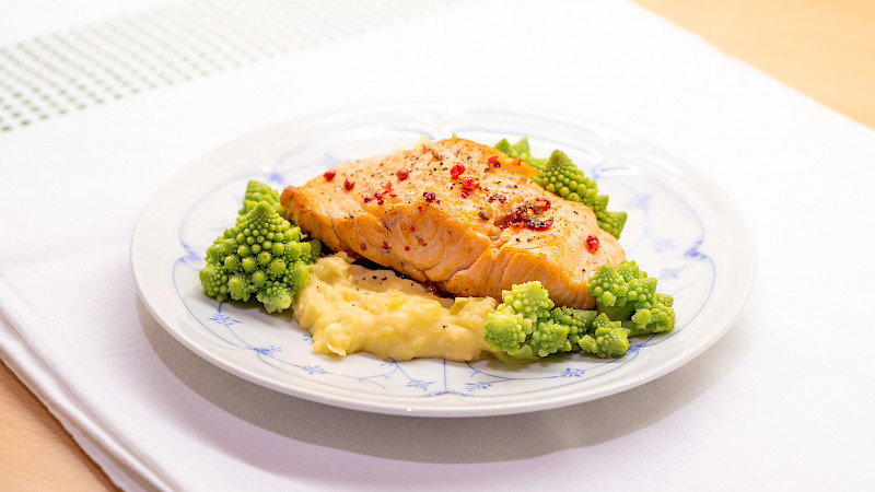 Lachs mit Kartoffel-Sellerie-Stampf und Romanesco